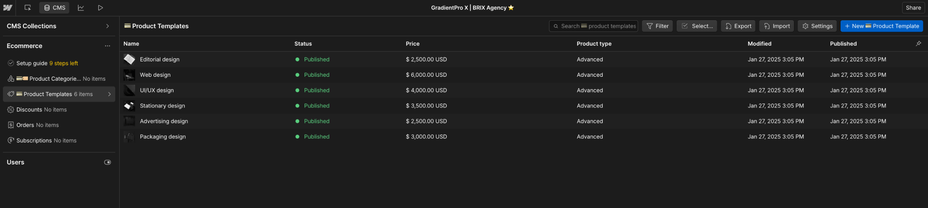 If you just purchased GradientPro Webflow Ecommerce Template and are looking for the basics on how to get started editing it, start here.