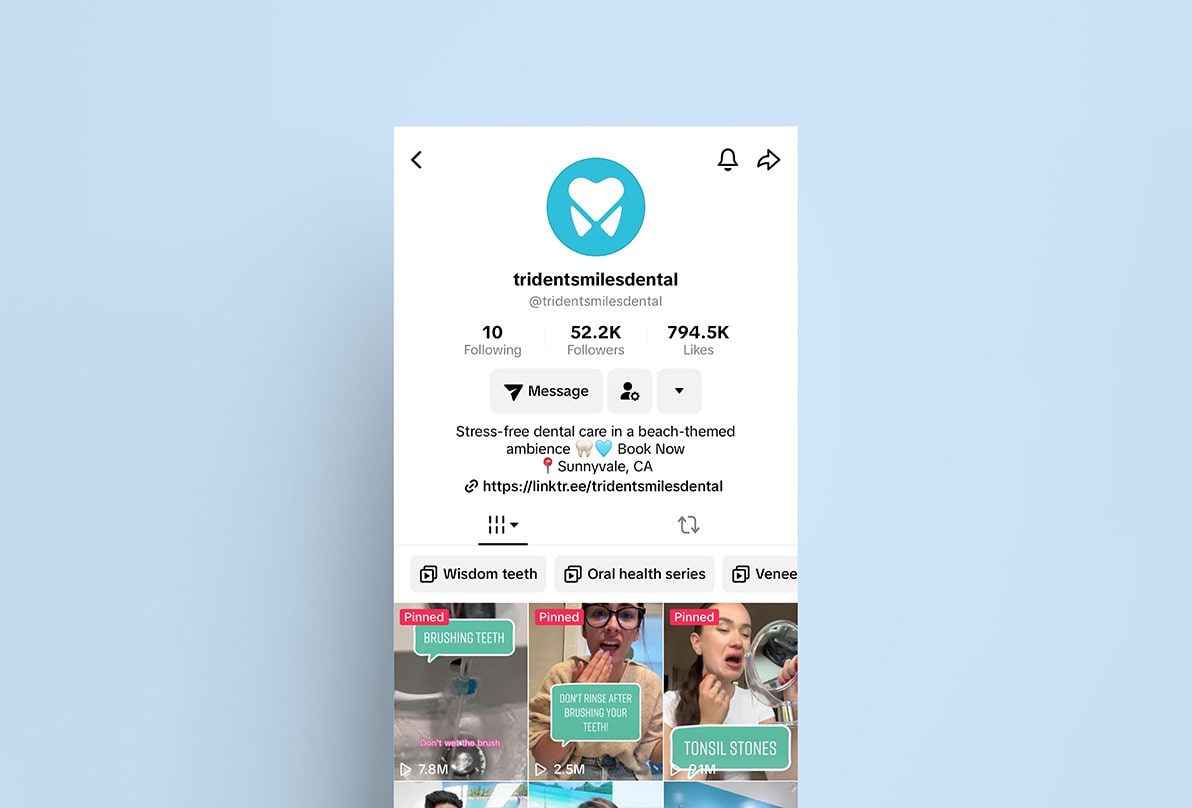 People hate going to the dentist and they hate ads. We changed both by building a practice where checkups feel like vacations and ads feel like messages from a friend. Regular content shoots keep ad campaigns fresh and authentic, showing Trident in a welcoming way, and along the way we grew to 50k followers on TikTok.
