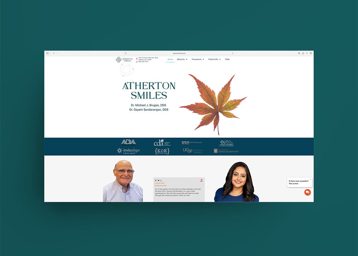 Beyond our brand efforts culminating in a beautiful and consistent online experience, the new website started bringing patients from day one. Targeted landing pages for new patients and Invisalign led to a 100% increase in new patients and a 300% rise in Invisalign starts. Today, Atherton Smiles ranks within the top three search results for all of its dental services.
